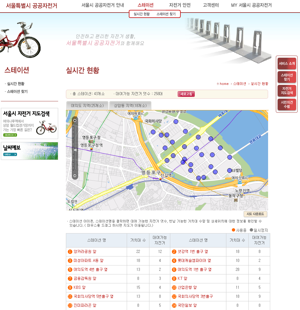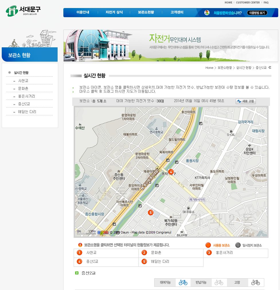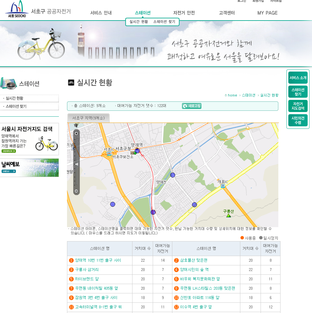 서초구 공공자전거. 서울특별시의 웹사이트와 동일한 구조이다.[/caption]