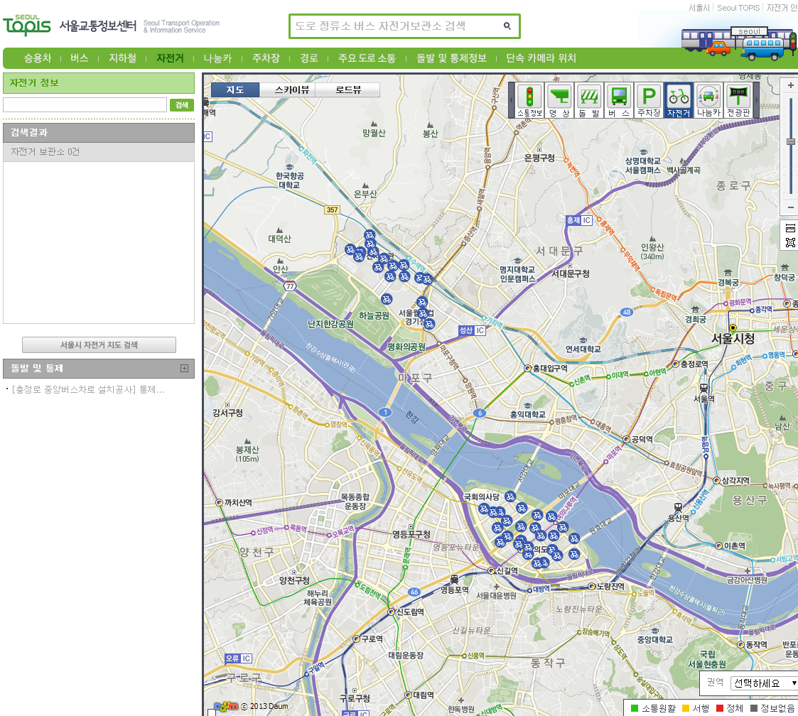 서대문구와 서초구의 웹사이트에는 각자 자기 구에 있는 대여소 정보만 제공합니다. 구 차원에서 운영하는 것이니 충분히 그럴 수 있죠. 그런데 서울시 차원에서 운영하는 나머지 두 사이트에서도 여의도와 상암 지역의 대여소 정보만 제공하는 것은 좀 이상합니다. 서대문구와 서초구의 자료도 얼마든지 공유해서 전시가 가능할 텐데요. 현재 서울시 웹의 인프라를 볼 때 그리 어려운 일이 아닙니다.