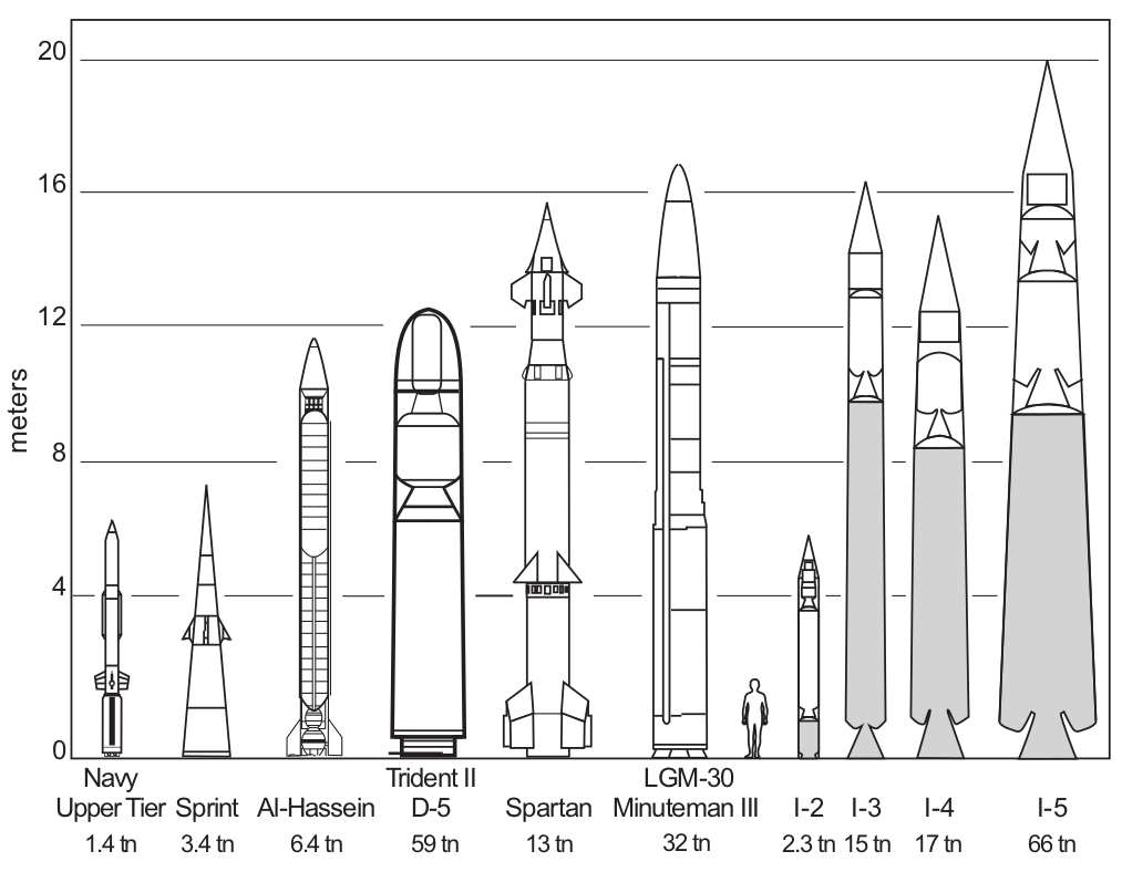 요격체의 컴퓨터 모델과 2004년 당시 현존하는 미사일들과의