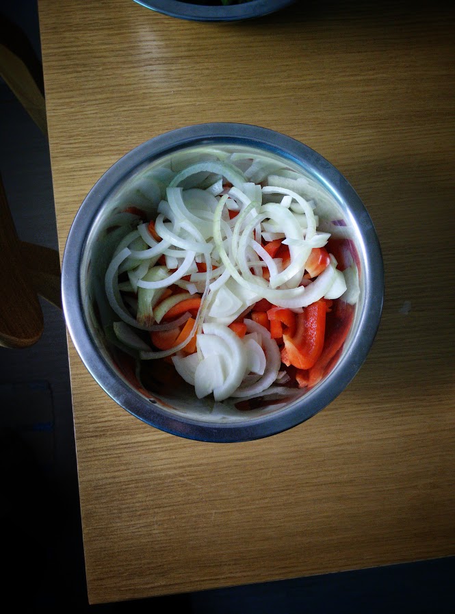 사실 제가 30년이 넘는 침묵을 깨고 요리를 시작하게 된 계기는, 냉장고나 발코니에서 채소가 그대로 상해가는 것을 보고 있을 수가 없어서였습니다. 지난번에 한 요리에 쓴 재료들이 냉장고에 남아 있어서 매일 매일을 좌불안석으로 보내다가 낼름 남는 재료들을 가지고 요리를 했습니다.