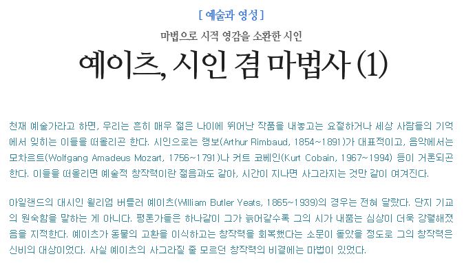 예이츠, 시인 겸 마법사 (1): 네이버캐스트