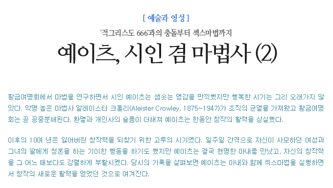 예이츠, 시인 겸 마법사 (2): 네이버캐스트