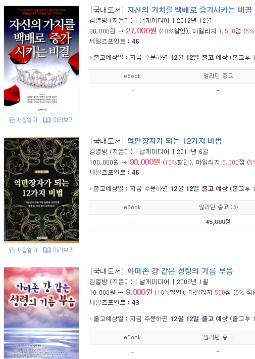 이 출판사의 책들은 대부분 김열방 선생이 혼자 쓰거나 (부인을 비롯한) 다른 사람들과 공저한 것이다. 공저자들에게도 놀라운 공통점이 발견된다.