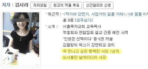 여기서 우리는 매우 중요한 사실 두 가지를 알 수 있다. 하나는 김열방 선생의 부인이 바로 이 문제의 출판사의 사장이라는 사실이며, 다른 하나는 이 사장님이 꼭 만나고 싶은 행복한 사모 1순위의 영예를 갖고 계시다는 사실이다.