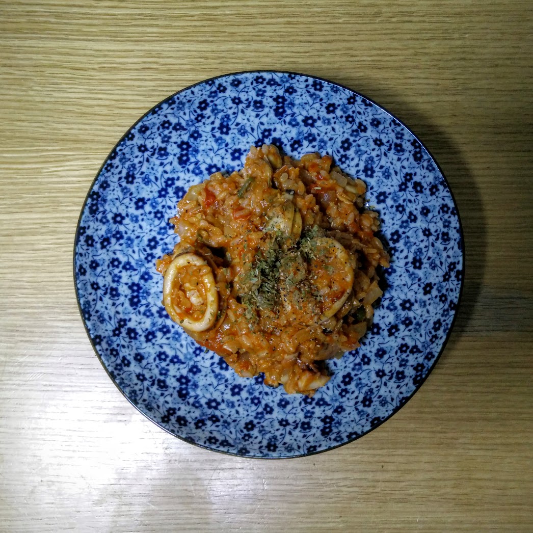 마눌님께서 토마토 소스를 사왔습니다. 그동안 스파게티는 많이 먹었으니 리조또를 해보자는 생각이 들었습니다. 레시피는 여기를 참고했는데 무슨 재료를 쓰느냐가 중요하고 분량이나 이런 건 그리 중요하지 않습니다: