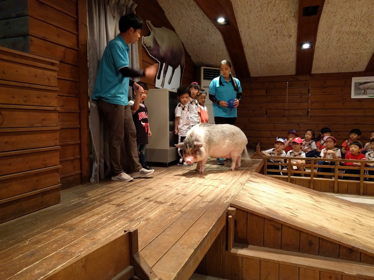 공연에는 돼지들이 이런 저런 간단한 묘기를 보여준다. 뭐 엄청나게 인상적이거나 하진 않다. 그래도 돼지는 귀여우니까 다 좋다.