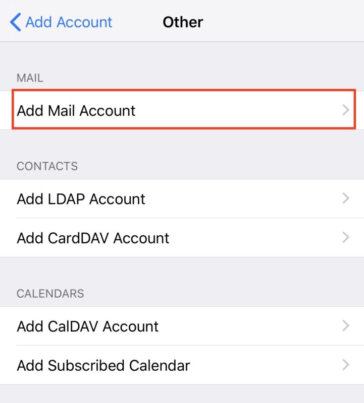 그리고 '메일 계정'을 선택한다.