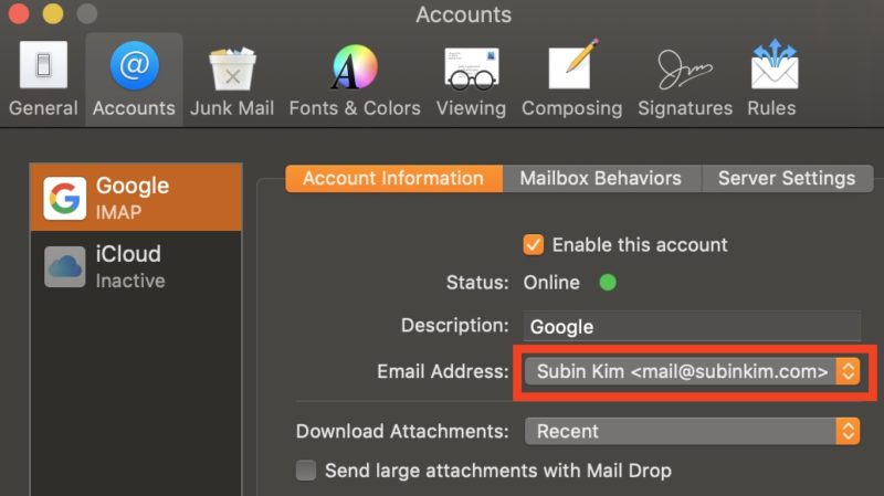 이렇게 하면 끝. 이제 앱등 기본 메일 앱으로도 내 개인 도메인 주소를 쓴 이메일을 보낼 수 있다.