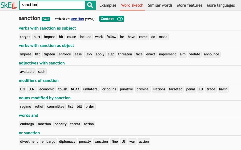 SkELL: 예문 검색으로 유명하지만 연어 검색이 더 유용한 서비스