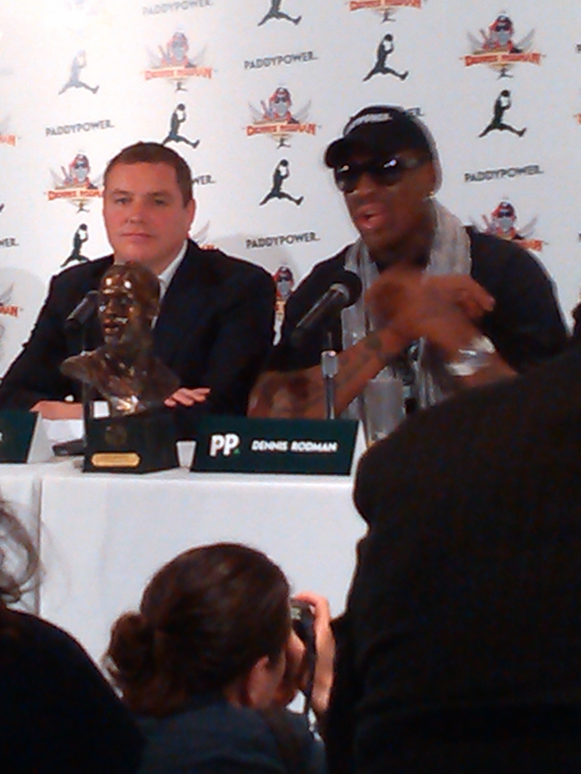 최근에 두 번째 북한 방문을 다녀온 데니스 로드맨이 바로 몇 분 전에 기자 회견을 끝마쳤습니다. 회견장에서 중대한 발표를 할 것이라고 미리 언질을 주었기 때문에 대체 어떠한 이야기가 나올까 무척 궁금했습니다.