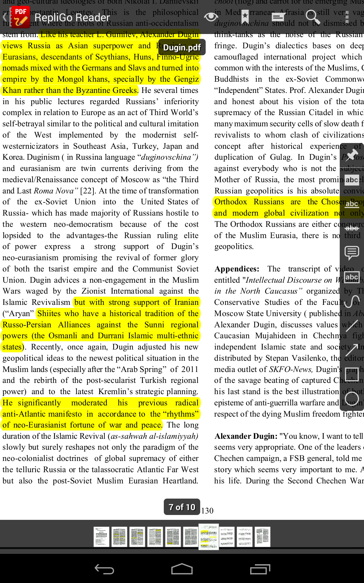안드로이드용 PDF 리더 RepliGo에서 하이라이트를 하는 모습[/caption]